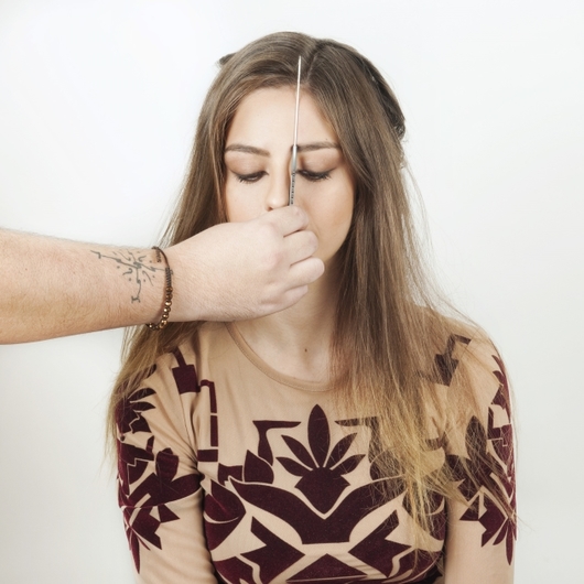 'Οταν φτάσεις στο μπροστινό μέρος κάνε την χωρίστρα σου στο σημείο που ξεκινάει το φρύδι.