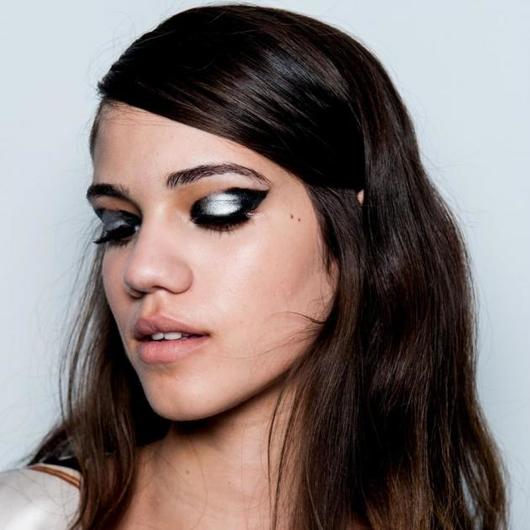 Μαύρο σβησμένο μολύβι στην εσωτερική και εξωτερική γωνία του ματιού και glittery ασημί σκιά στο κέντρο του κινητού βλεφάρου που θα καταλαμβάνει το μεγαλύτερο μέρος. Μια πολύ, πολύ ωραία ιδέα για όσες αγαπούν τα smokey και έντονα μακιγιάζ.