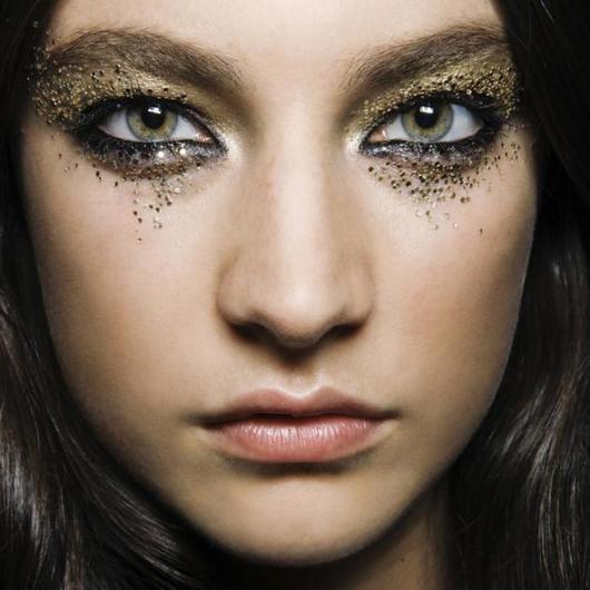 Γενναίες δόσεις glitter πάνω και κάτω από τα μάτια σου σε χρυσό και μαύρο. Ταιριάζει τέλεια στα rock κορίτσια και θέλει τόλμη! Α! Και όχι ιδιαίτερες υπερβολές στο ρούχο. Ένα total black outfit σε στενή γραμμή είναι ό,τι πρέπει!