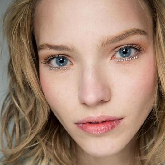 Η girly εκδοχή του glitter! Χρησιμοποιήσε μια κόλλα για τις βλεφαρίδες τοποθέτησε μικρή ποσότητα στα κάτω βλέφαρα και κόλλησε ασημένια ασημί κρυσταλλάκια όπως αυτά που τοποθετούνται στα νύχια. Προσοχή! Προσοχή! Άφησε μια ασφαλή απόσταση από τα μάτια σου.