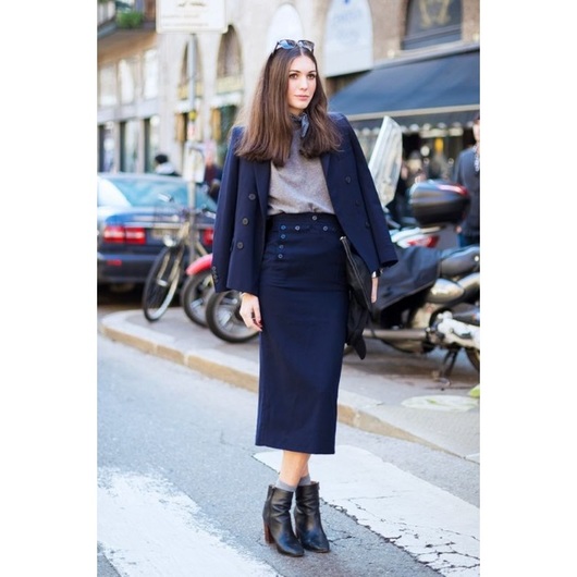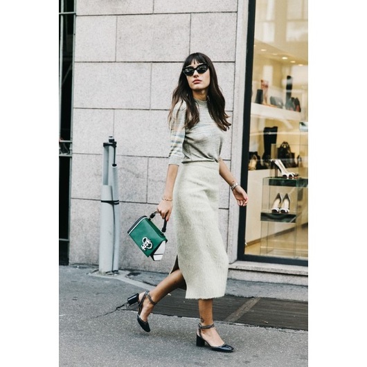 Φόρεσε μια pencil φούστα με μήκος μέχρι τη μέση της γάμπας με ένα τοπ σε αντίστοιχη απόχρωση και ολοκλήρωσε το look με ένα ζευγάρι mary- janes.