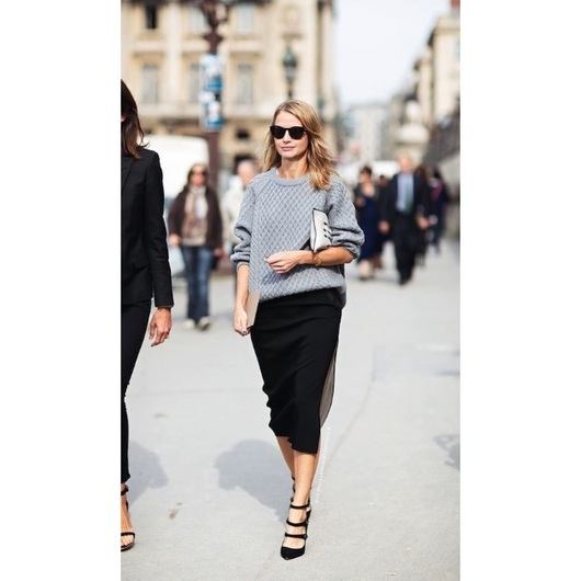 Φόρεσε μια pencil φούστα με μήκος μέχρι τη μέση της γάμπας και ταίριαξέ την με ένα πουλόβερ και strappy γόβες.